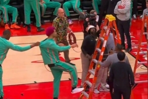 笑疯了刘冠杉扣篮前想把篮网用球砸下来 结果三投不中
