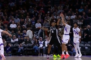 GIF-基昂特·乔治三分命中还加罚,卡斯尔疑似垫脚被升级一级恶意犯规