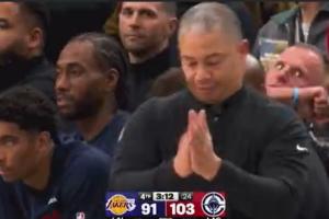 气疯了!巴图姆界外球低级失误 泰伦·卢怒发冲冠狠砸技术台