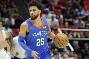 雷霆球员阿杰伊·米切尔虽然本场比赛手感不佳,但是在场上依旧表现全面,在场时能够帮助球队占据主动。