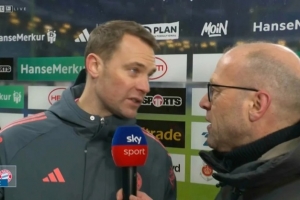 随后诺伊尔在握手后想迅速离开,天空电视台此时中断了采访。