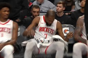 值得一提的是,杜兰特对阵开拓者怒摔水杯后,火箭近12战8胜4负,输给国王、马刺、雷霆和76人,击败公牛、森林狼、鹈鹕、马刺、活塞、灰熊、老鹰和独行侠。
