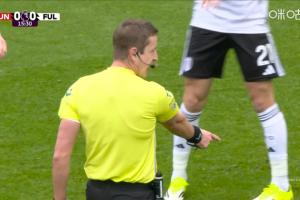 体育资讯02月01日讯 英超第24轮,曼联vs富勒姆。比赛第16分钟,库尼亚突入禁区倒地,主裁判第一时间判点,VAR介入后取消