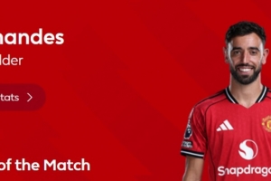 本场比赛B费送出2次助攻,赛后他也当选英超官方球迷票选全场最佳球员。