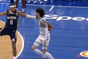 GIF-费尔斯防守拉梅洛·鲍尔被点飞 结结实实给了后者一个巴掌