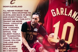 加兰今天发文致谢骑士道:“我永远不会忘记2019年被克利夫兰选中的那个夜晚,以及此后所获得的一切。这座城市教会了我超出想象的东西。感谢教练们、工作人员、管理层、吉尔伯特家族、我的队友们以及球迷们的支持与关爱。克利夫兰永远是我的第二个家,我会永远珍藏这些回忆。永远的爱,10。”