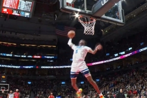 笑疯了刘冠杉扣篮前想把篮网用球砸下来 结果三投不中