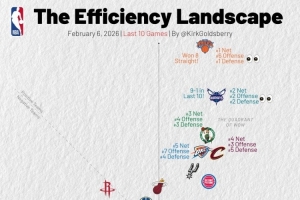纵坐标为防守效率 从下至上越拉越大