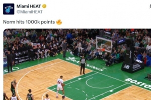 比赛进行到第二节,鲍威尔通过罚球得到热火生涯第1000分,热火官方推特随后发文祝贺,却不慎闹出乌龙——将“1000分”误写成了“100万分”🔥。