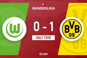 伤停补时3分钟。上半场比赛结束,沃尔夫斯堡0-1多特蒙德。