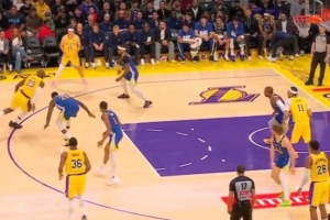 GIF-詹姆斯光速启动差点晃翻追梦 左手上篮终结
